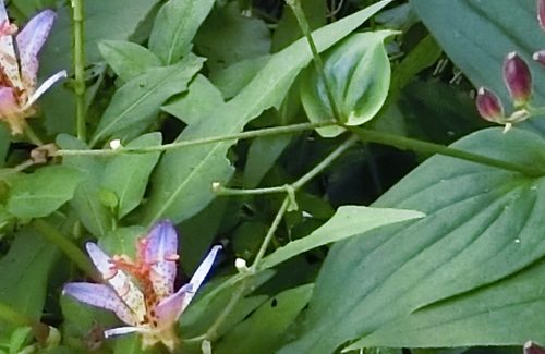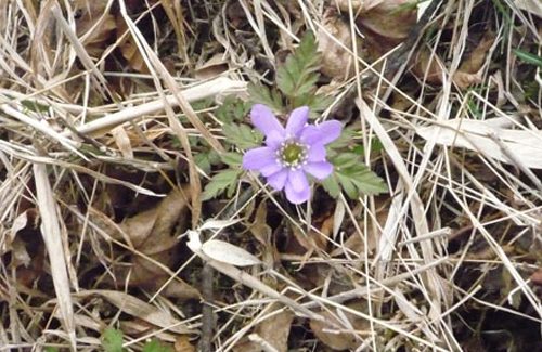歯ぎしりする思いで歩いていたら、樹林帯下に青い花が!